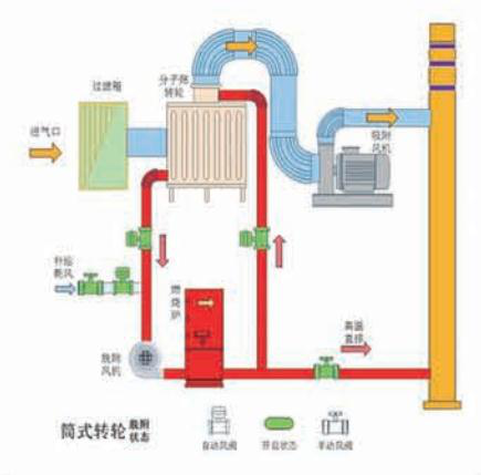 沸石轉輪(沸石分子篩)是一種將沸石吸附性材料制作成顆粒狀結構的轉輪設備,相比進口蜂窩轉輪具有間歇性脫附、且吸附效率高、投資及運行成本低的特點。使用沸石轉輪能夠有效地將揮發性有機廢氣(即VOCs廢氣)進行凈化,VOCs吸附采用的是疏水型分子篩,分子篩耐高溫,安全性好,在550℃時可完全活化再生,而不損傷孔道結構;可適用較高濕度的工況而不影響吸附效果。