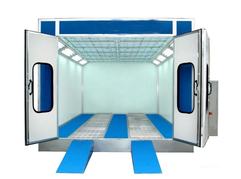 上進風、下排風移動噴漆房采用頂棚上進風,下部排風,頂棚使用中效過濾棉對進風進行初步凈化,防止粉塵影響漆面光潔度;排風采用高效過濾棉,以過濾漆霧。